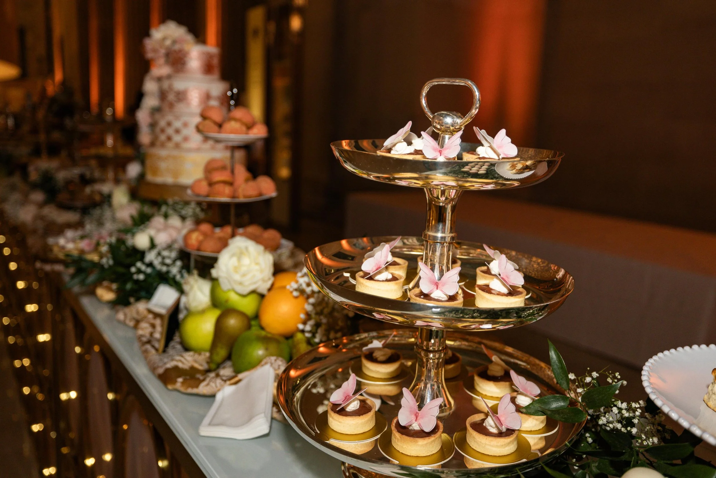 To enhance the experience, all desserts were served on vintage tea stands, mirrors, and bespoke canapé platters, creating a truly opulent aesthetic.